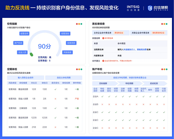 在贷中环节,该方案还可通过多项企业评分模型,对企业综合实力、空壳风险、司法风险、合同违约风险等进行量化计算,辅助银行审批人员评估企业的合理授信额度。贷后环节,通过启信慧眼提供的风险预警模型,银行可持续对有贷户负面、舆情、关键人员实施监控,一旦捕捉到风险信号,即发布预警信息,提醒银行规避风险,提前做好应对工作。