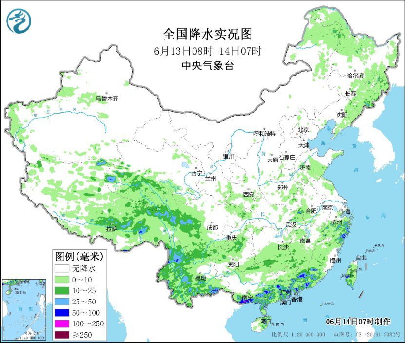 中央气象台今晨继续发布暴雨蓝色预警,预计今天,广东中南部、广西东南部、福建东南部、台湾岛中北部以及云南南部和西部、西藏东南部等地部分地区有大到暴雨,其中,广东西南部沿海、西藏东南部等地局地有大暴雨。
