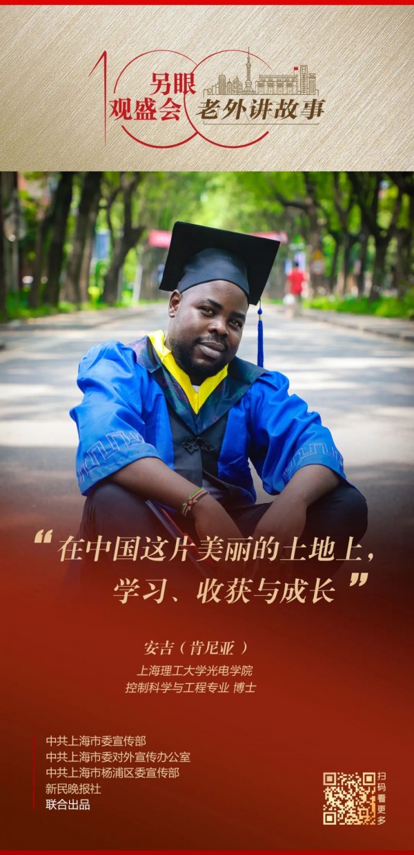 来自肯尼亚的安吉,是上海理工大学光电学院控制科学与工程专业的在读博士。在中国十年的学习生涯,不仅培养了他的专业能力,也丰富了他对生活的理解。