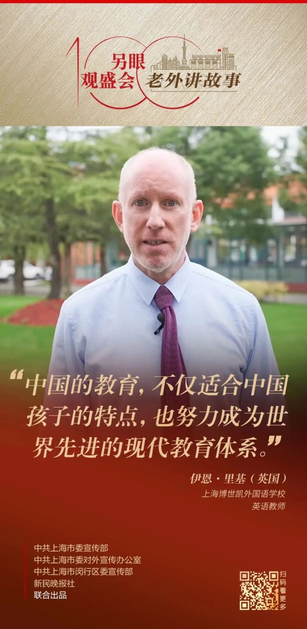 伊恩也和同事们相互学习,在思想碰撞中探索更多元、更全球化的教育方法。二十大报告对教育工作高度重视、全面布局,明确提出了“加快建设高质量教育体系”的目标任务。这吸引了伊恩的注意,他认为这不仅意味着中国的教育要适应中国孩子的特点,也意味着中国教育将努力成为世界舞台上先进的现代教育体系。