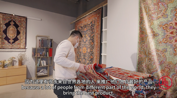 为此,阿里从北京搬来了上海,并在上海绿地贸易港建立了第一个阿富汗进口商品展厅。他的展厅中琳琅满目,挂满了来自阿富汗的手工地毯,据阿里介绍,阿富汗的中部和北部是靠地毯行业生存的,他们在中国卖出一块地毯,就可以让一个阿富汗家庭得到八个月到一年的收入。