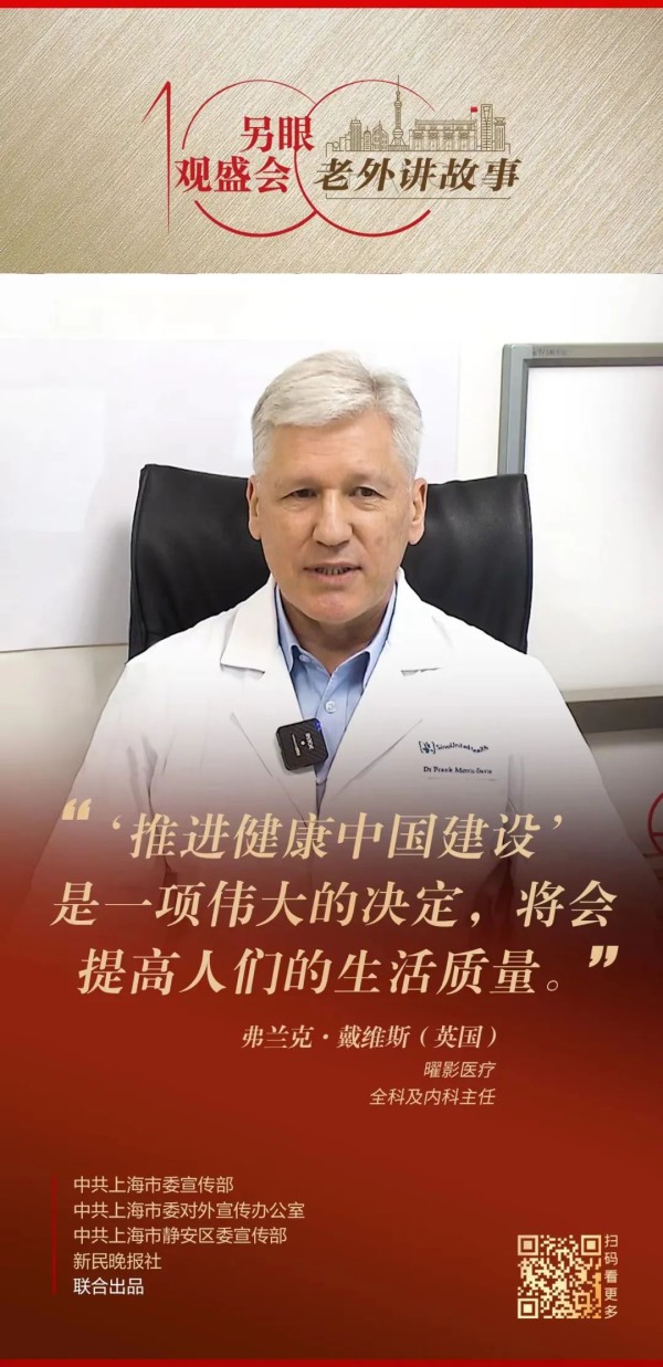 而在日常工作中,他身体力行地在上海践行着这项伟大事业。作为一名全科医生,他可以照护老人、青少年和新生儿的健康。“我还擅长诊治皮肤相关疾病,接诊了很多这类患者。”在弗兰克·戴维斯接诊的患者中,60%是外籍人士,他为自己能够在上海从事医疗服务而感到自豪。