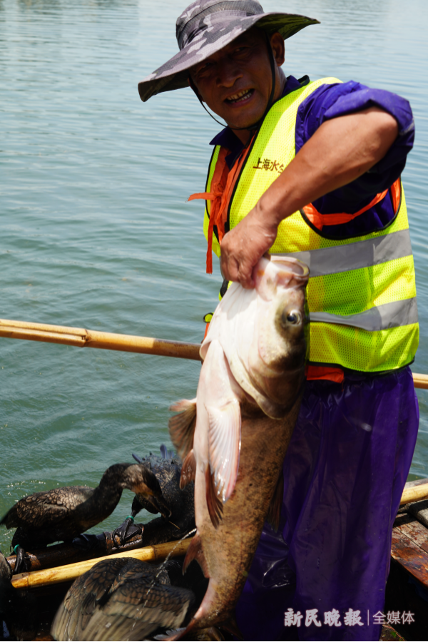 图说:老李展示今天捕捞的大鱼 新民晚报记者 郜阳 摄(除署名外下同)