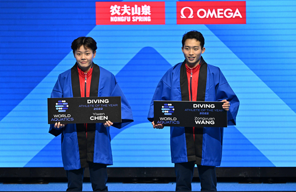 图说:陈艺文与王宗源被评为年度跳水运动员