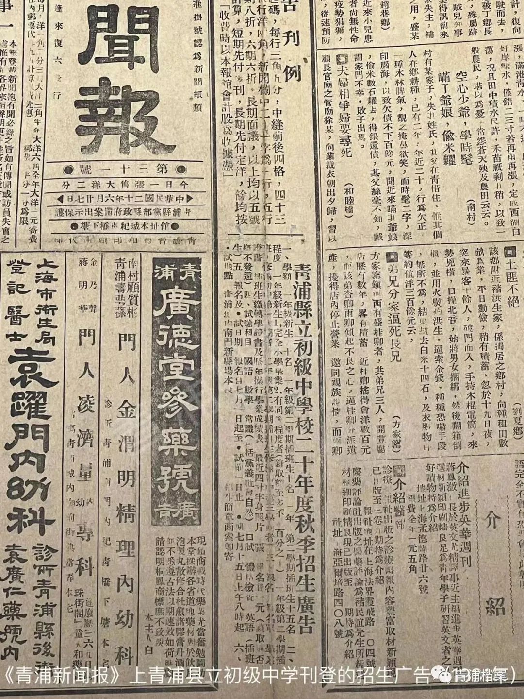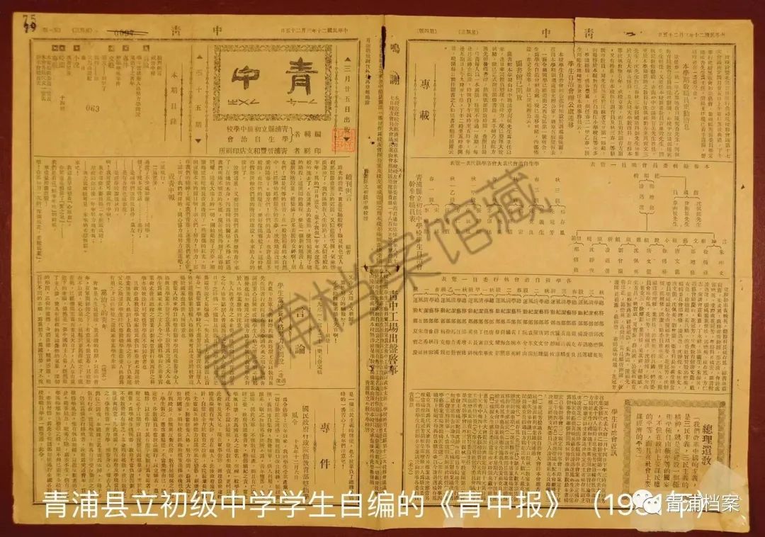 1923年8月,青浦城厢开办了全县第一所普通中学——青浦县立初级中学。岁月悠悠、倏忽百年,青浦县立初级中学走过百年风雨成长为上海市实验性示范性高中——上海市青浦高级中学。这所百年老校在乱世中不忘初心,坚守育人使命;在新中国成立后不改誓言,肩负起培养国家栋梁人才的重任。下面就让我们从档案的视角感受一下青中的百年成长史。