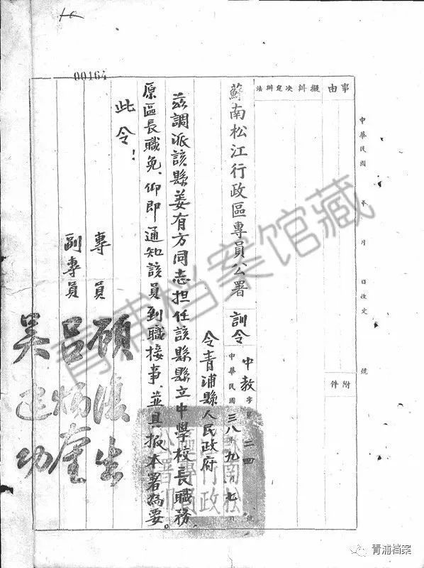 1923-1949年青浦县立初级中学相关档案