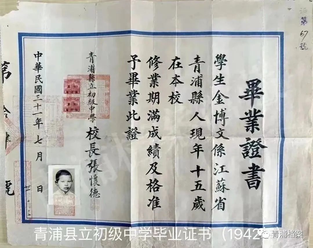 青浦高级中学相关档案中记载的知名校友