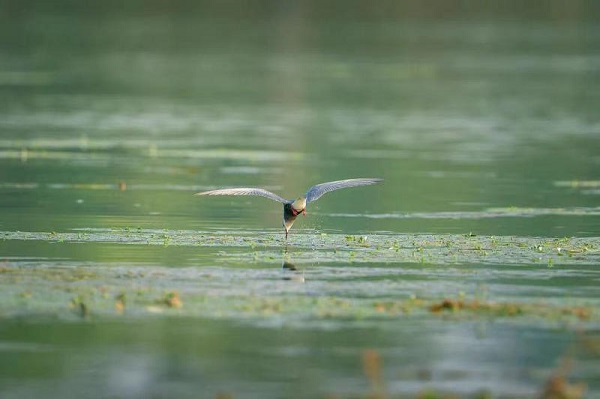 61岁的黎海赢是一名生态摄影爱好者,经常带着专业设备拍鸟。他见证了元荡湖越来越美、越来越热闹。“这么宽广的水域,在上海不太多见。元荡湖这两年的水质好了、水草好了、水里生物多了,鸟类自然就被吸引过来。这段时间我们一直在拍须浮鸥,须浮鸥是夏候鸟,每年5月份到9月份在这边繁殖。之前我们要跑到外省去拍,现在在青浦就能拍到。”黎海赢说。