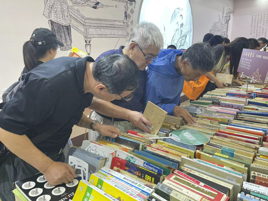 读者们边淘书边交流,不时可以听到“这本书我找了好久,今天终于找到了”的惊喜声。一位退休多年的老编辑甚至还在这里偶遇自己几十年前主编出版的书籍,翻开这本书,青春的回忆涌上心头。由于展销的旧书大多是单品,可以看到很多读者一旦淘到了自己心仪的书,便将其高高举过头顶再淘其他书,可谓爱不释手。