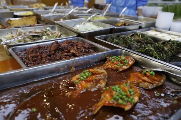 中午12点左右,这家社区食堂内几乎坐满了食客,因此堂食可能需与他人拼桌。如果您居住在附近,可以打包带回家吃哦。