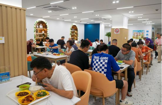 7月底,广中路街道社区居民期盼已久的“花园社区食堂”重新开业。食堂就餐区域从二楼搬到了一楼,对老年人来说更便利了。总共500种菜式,每日提供约15个早餐菜品、20多个午餐和晚餐菜品,每天不重样。同时,还会根据24节气推出“限定”菜品,并结合寒暑假、六一等节日不定期推出儿童餐。