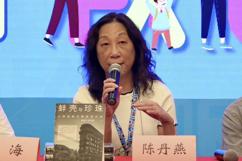 《蚌壳与珍珠:上海武康大楼居民口述》由人民文学出版社于2023年4月出版。武康大楼是上海的一座百年地标性建筑。8月17日中午,《居民述说自己的历史——〈蚌壳与珍珠:上海武康大楼居民口述〉》新书发布暨签售会在上海展览馆第三活动区举行。活动由复旦大学社会学教授于海主持,本书作者陈丹燕和陈保平对谈。