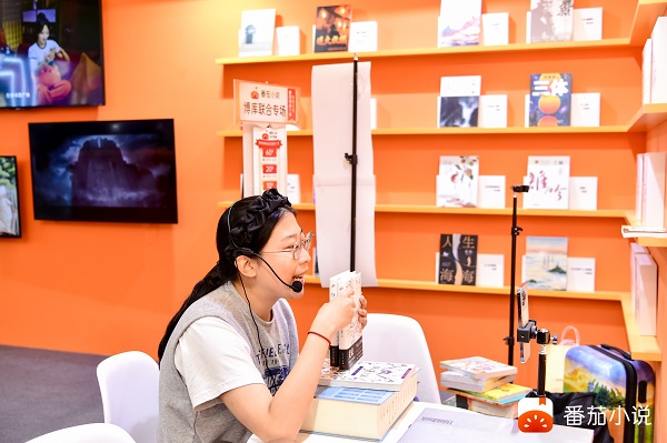 图说:上海书展期间,番茄小说联合博库文轩共同甄选优质读物,在现场直播售卖 采访对象提供(下同)