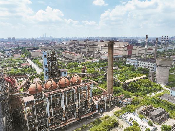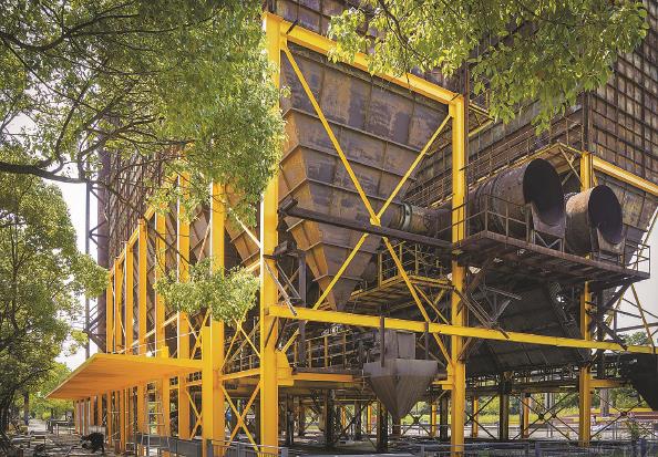 图说:中国宝武钢铁会博中心旁仍保留不少工业遗迹