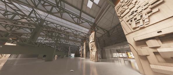 站在型钢南路,眼前是大约1公里长、120米宽、20多米高,总体量达23万平方米的宝武不锈钢厂区型钢厂房。经过岁月的洗礼、工业的变迁,钢架早已锈蚀,屋面陈旧剥落。但连续多跨支撑结构营造出宏伟壮观的空间和尺度感,连续柱网、屋架结构形成极强空间序列,依旧具有独特的工业美感。未来,这里将成为上海大学上海美术学院主校区,以完全开放式的形态,实现艺术创造和城市发展的同频共振。