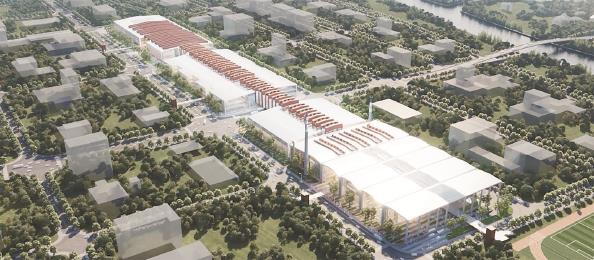 在钢铁厂房中打造美术学院,是全世界绝无仅有的一次尝试,独一无二的一种存在。上海大学上海美术学院院长曾成钢对其不吝赞美之词,“规划中有三条道路从校园穿过,构建出中国的‘川’字,寓意‘川’流不息,院区与城市共融共生,无疆无界,创造无限可能。”