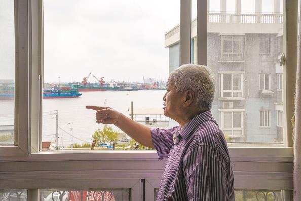 图说:陈汝琦现住的小区临近江边,在阳台上便能看见往来的船只