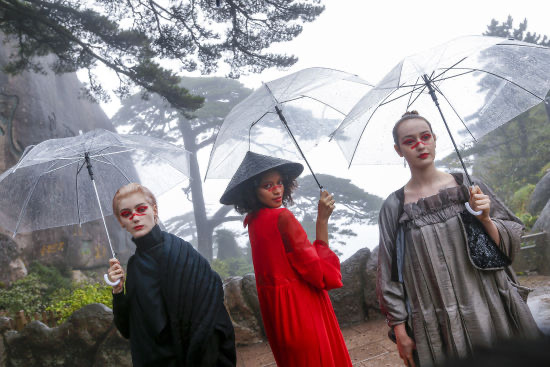 发布会前,模特们还登顶黄山,在迎客松前拍摄时尚大片。此次活动,在黄山上和山脚下同步进行,交相呼应,首次通过时装秀全方位、多角度和超立体的方式来展现黄山的与绰约风姿。