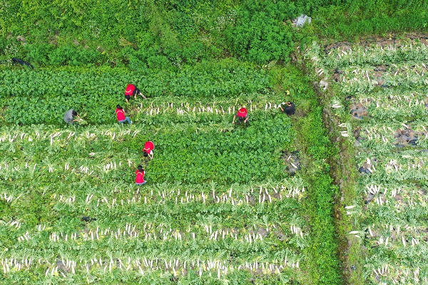 一个契机,让藏在“山村”里的农产品,迈过道道山坎,走向城市。明康汇作为海亮集团旗下公司,2022年推出“百村万亩亿元”产销共同体“冬闲田”项目,并在山区26县全面拓展。江根乡利用偏远乡镇高海拔、温度差优势,盘活资金、田地、劳动力等要素,与明康汇搭建起农产品产销连通的合作桥梁,打通农产品流通环节上的“痛点”和“堵点”,让江根花菜、辣椒、豇豆等特色农产品搭乘明康汇品牌门店和数字农贸优势,坐上开往城市居民餐桌的“直通车”。