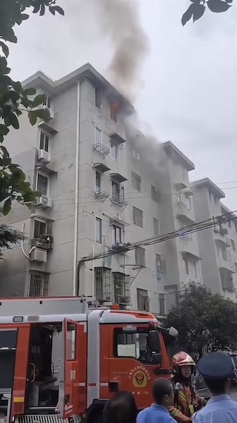 接报后,消防队员立刻赶到小区,上楼将明火扑灭。目前,火灾起因正在调查中。