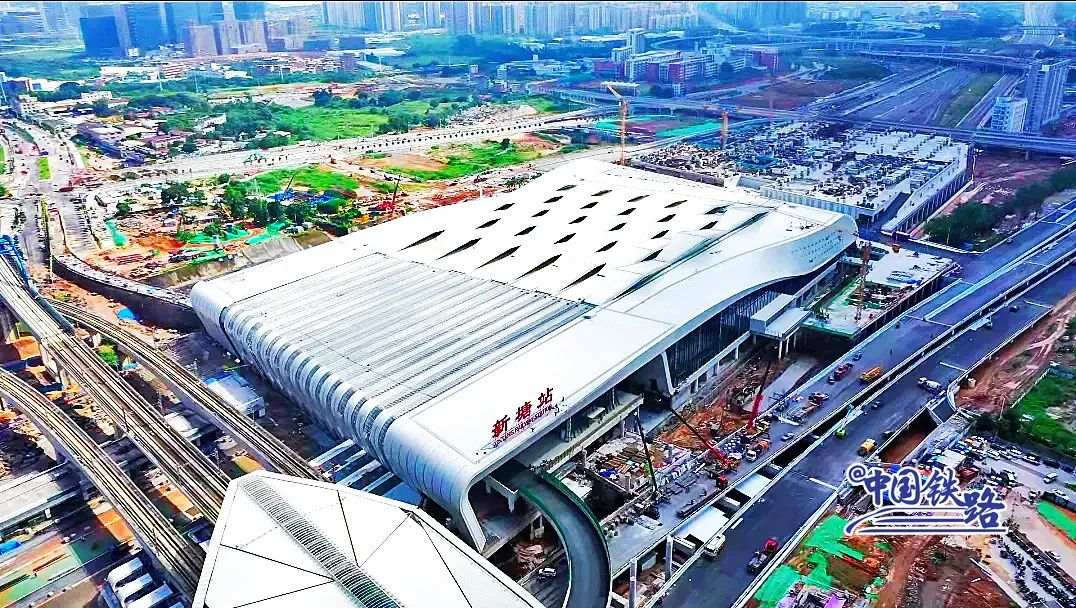 新塘站位于广州市增城区,是广汕高铁始发站,站房总面积约5万平方米,站场规模为7台17线。