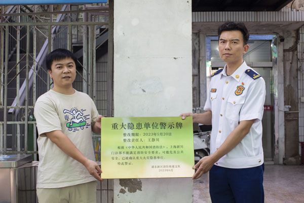 新民晚报讯(记者 李一能)近日,浦东新区消防救援支队川沙大队对两家重大火灾隐患单位高和精工(上海)有限公司、上海新川门诊部提交的销案申请进行现场核查,确认这两家单位已按照要求将存在的重大火灾隐患整改完毕,符合销案条件,当场摘除重大火灾隐患单位警示牌。