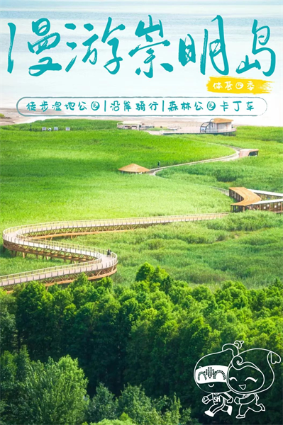 徒步穿越美丽的湿地,沿着江边自行车骑行,快来与小体探索崇明岛的美丽与悠扬。七条“体育+旅游”精品路线,小体已经全部为您推荐完啦。跑步、骑行、徒步、水上运动,各种运动融汇在旅游线路中。邀三五好友,一起打卡吧!