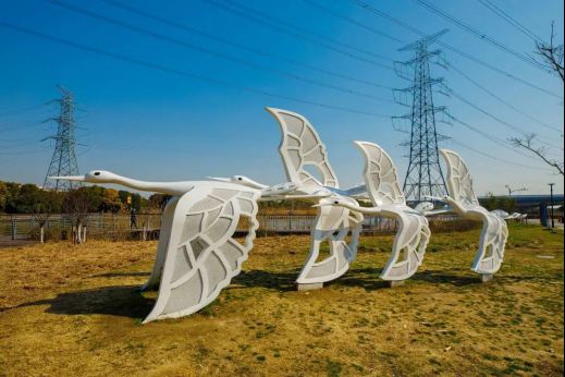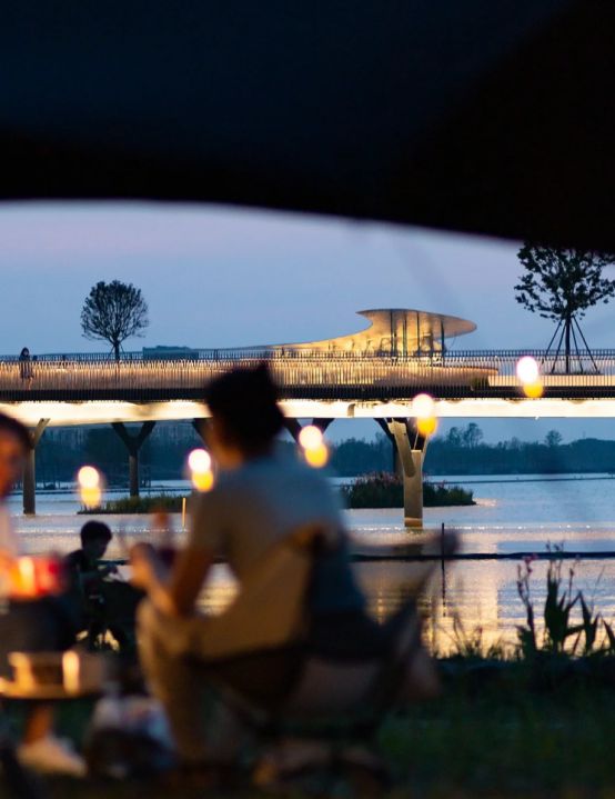 油墩港附近,清新自然、野趣十足,怀古广场好露营,崧源驿好休憩,倚木广场、观流广场、映霞广场更是成为市民朋友们日常最为“亲水”处。