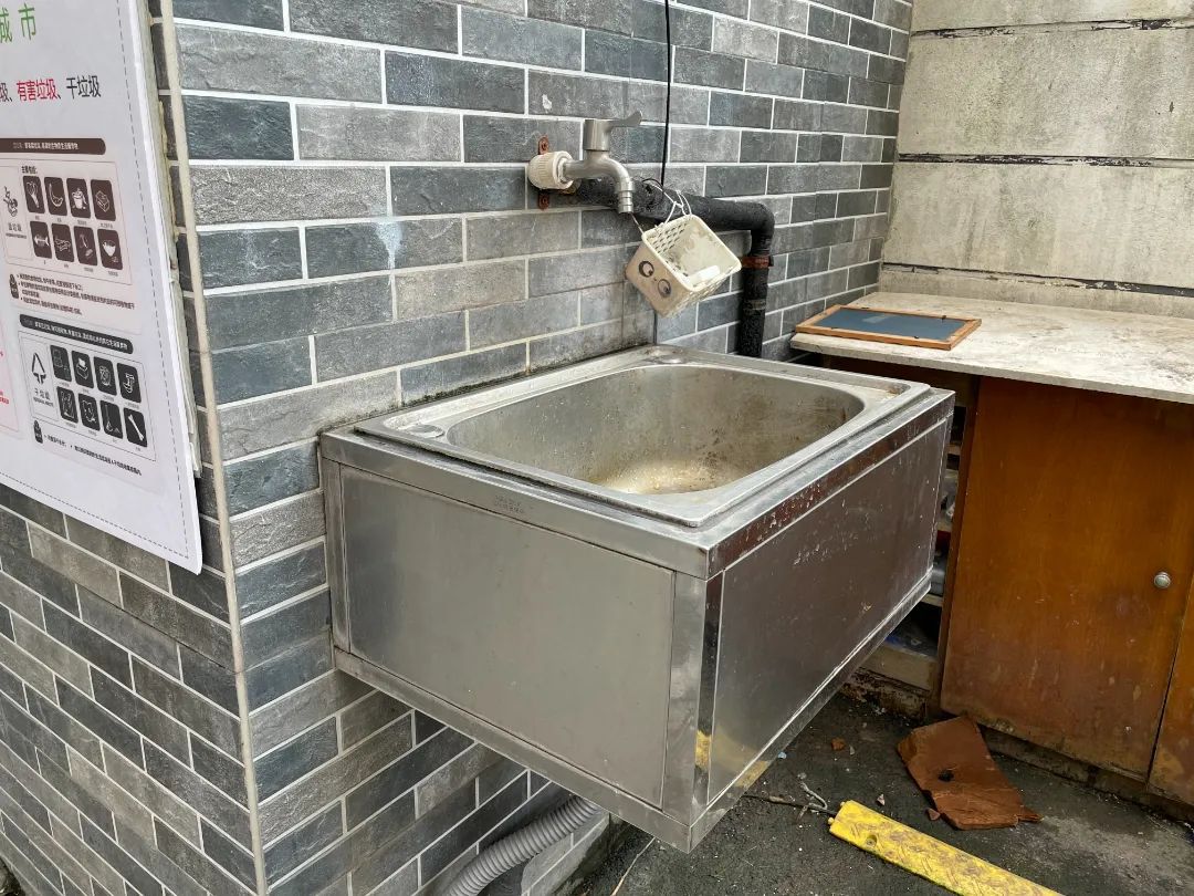 除了自动感应、垃圾满溢提醒等智能装置外,垃圾厢房内还配置了除臭、灭蚊、香薰、排风等设备,位于垃圾厢房的一边还安装了水池。