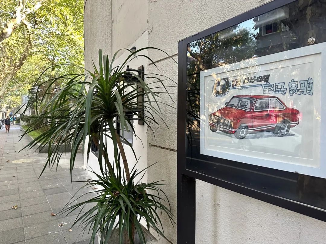 虽然笔触略显稚嫩,但“宝马良驹”大红色的外观和复古样式的车身,为秋天的新华路增添了一份热烈的色彩,也吸引了不少来往市民驻足欣赏。