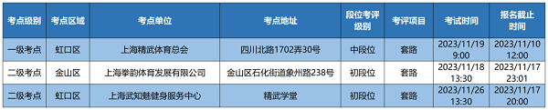 图说:2023年上海市《中国武术段位制》11月晋考计划