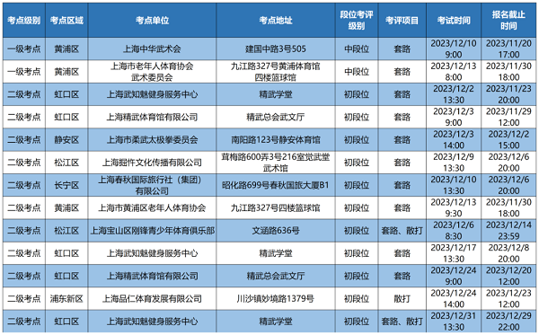 图说:2023年上海市《中国武术段位制》12月晋考计划