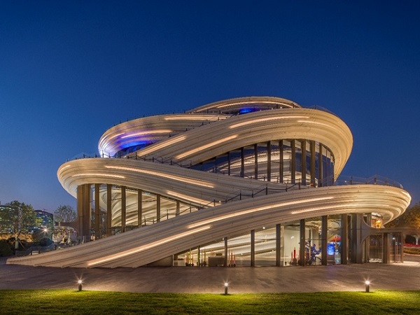 西岸漩心Orbit结合动静有法的前沿设计风格与绿色生态的设计理念,其开放的视觉设计与创新的建筑结构,鼓励参观者自由探索交互,让“人”真正成为公共艺术的一部分。其室内设计由Wutopia Lab主持建筑师俞挺担纲,延续建筑外部旋转上升的肌理与质感,让西岸漩心Orbit“由内而外”进一步与城市生活紧密关联,以多样的文化交流活动,成为都市艺术文化的立体延伸。