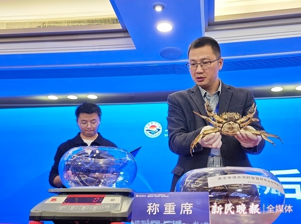 最终,来自南京市高淳区固城湖中华绒螯蟹原种场的公蟹与来自吉水县盘谷生态农业发展有限公司的母蟹夺得了“蟹王”“蟹后”,“王”“后”均比去年的重了一两半左右。