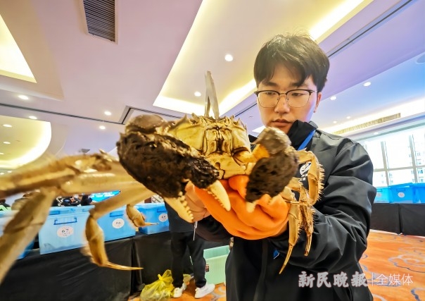 图说:现场蟹王蟹后展示 新民晚报记者 陶磊 摄(下同)