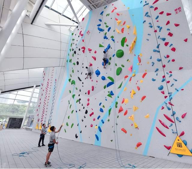 场馆内拥有高15米、宽20米的超大难度区,难度系数从5.7到5.13,自动保护、顶绳和先锋的配置,让体验者可以尽情享受攀岩的快乐。