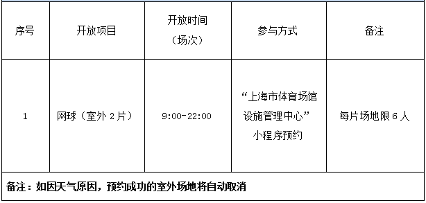 11月24日:田林体育俱乐部、康东网球馆9:00起;体育宫10:30起;中原体育场12:00起。当天截止时间为22:00。