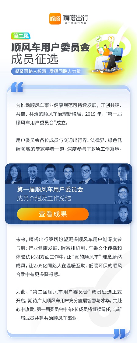 从参选者职业背景来看,包括世界500强企业骨干人员、执业律师、高校教师、资深媒体人等,来自交通、文旅、法律、互联网、通信、环保、传媒等多行业,将有助于顺风车用户委员会吸纳不同方向的成员,共同建言献策,推动行业健康高质量发展。