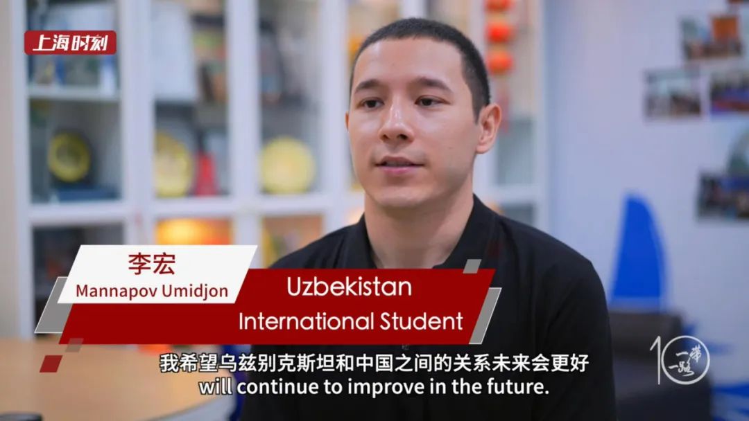 “充满机遇的城市、便利的生活条件,在这样美丽的环境里学习生活,让我倍感亲切。”李宏爱好广泛,乒乓、书法、茶道……样样都要尝试。虽然中文表达还不太流利,但是唱起周杰伦的歌曲腔调十足。他告诉记者,中国和乌兹别克斯坦是好朋友、好伙伴。“一带一路”倡议加强了两国之间的相互合作。毕业后,他希望留在临港工作,用自己的力量为中外交流搭建一座桥梁。