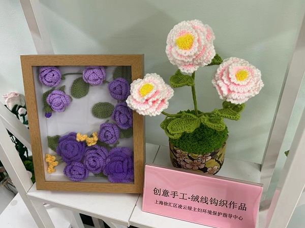 图说:全职太太利用特长和闲暇时间教社区居民开展变废为宝的绿色手工。凌云街道供图(下同)