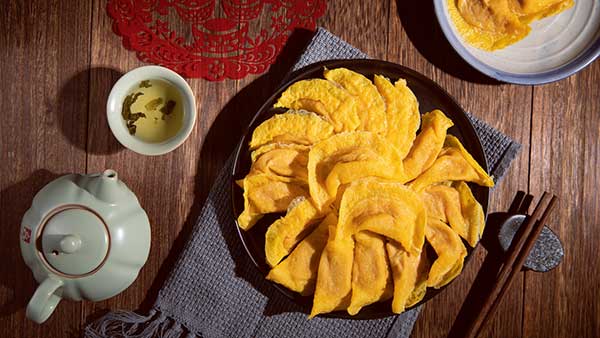 “玉盘满盛金元宝,竹筷伸向玲珑饺”,又将新年,想到蛋饺,心里技痒,转头看到老爸满头雪白,不由得大声对他说:“今年阿拉还做蛋饺。肉馅,我来剁!”心中默默祈福,不求财,只求健康。(孙小方)