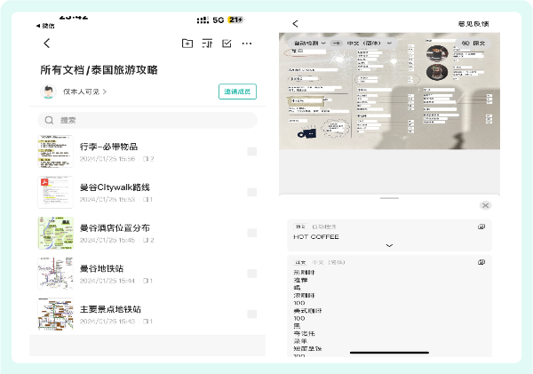 到泰国之前,胡女士已经从互联网和旅行手册上收集了大量的攻略存在手机上,扫描全能王目前支持扫描识别41种语言的文档,可以帮她应对旅行中常见的语言翻译需求。