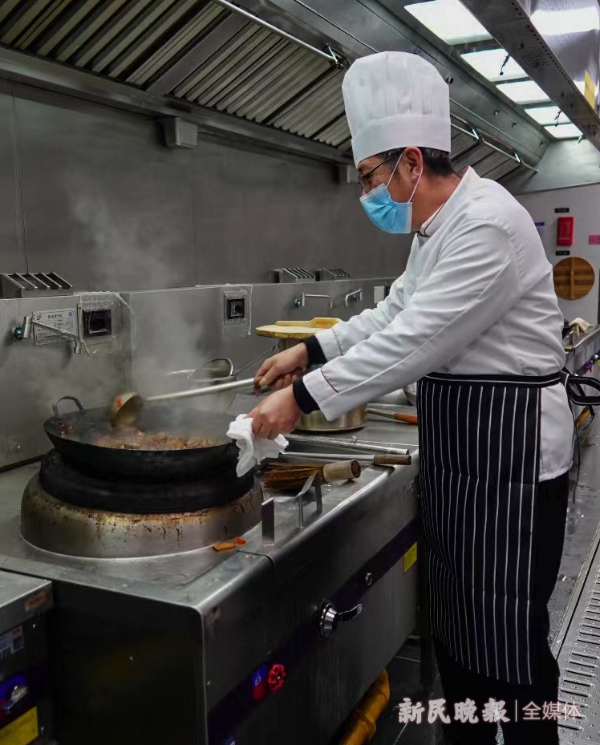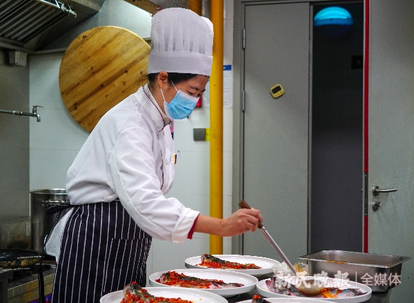 该校副校长俞晓光的“红烧牛尾”在学校里“早有传说”,为了献上自己的拿手好菜,他一早就从市区赶到食堂,“这个菜是功夫菜,要选择好食材,还要注意火候,要烧得入味,就得慢炖,没几个钟头是不行的”。年夜饭餐桌上,剁椒鲈鱼这道菜很受欢迎,掌勺的是该校党委副书记夏雨,她来自四川,吃辣挺讲究,鲜香辣爽的剁椒鲈鱼象征“年年有余,红红火火”,开胃又下饭……