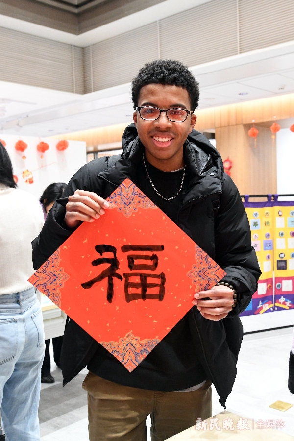 图说:上海纽约大学“饺子节”为同学们准备了融汇中西的各色饺子(上);剪窗花、写福字,留学生感受中国年味(中&下) 新民晚报徐程 摄