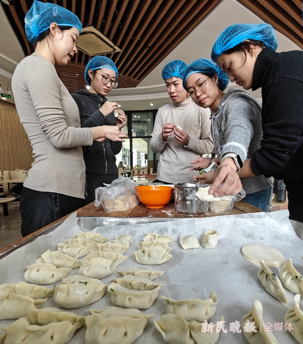 饺子,是春节很多家庭必备的传统美食。包好的饺子按横竖成行排好顺序,意味着来年顺气运旺。在位于前滩的上海纽约大学,不少来自世界各地的学生留在上海感受新春佳节。学校则精心组织了一场“饺子节”,餐厅各处洋溢着新年的喜庆,这顿饺子和记忆里的猪肉白菜、三鲜馅儿等传统风味不一样,而是融汇中西,意大利菠菜芝士方饺、西班牙牛肉酥皮饺、马来西亚鸡肉咖喱卜、素食香菇青菜蒸饺……看着就有食欲。饺子节现场,留学生们还体验写春联、猜谜、剪纸等传统民俗文化活动,来自世界五湖四海的师生在此刻感受到了浓浓的中国年味!