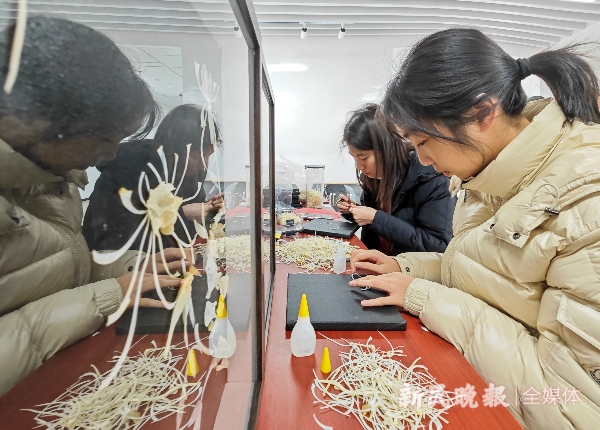 图说:上海建桥学院学生动手制作鳌鱼灯 新民晚报记者 陶磊 摄