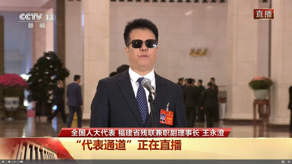 “我一定要把盲人兄弟姐妹们的声音带到大会上。盲人看不见,那就让更多人来看见我们。”全国人大代表、福建省残联兼职副理事长王永澄带着“摸得到的民主”,站在话筒前,为全国上千万视障人士代言。在今年的全国人大会议上,一份能够用“指尖”触读的政府工作报告,让他倍感温暖。这是盲文版政府工作报告首次亮相全国人大会议。