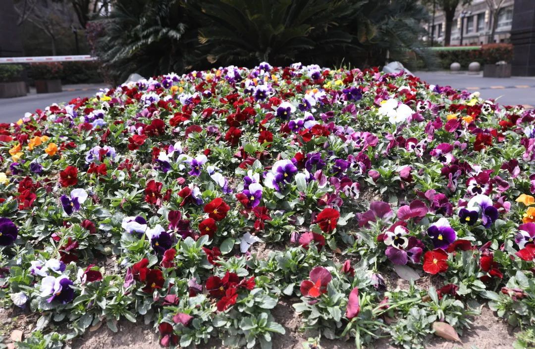 石泉路街道的花卉盛开了