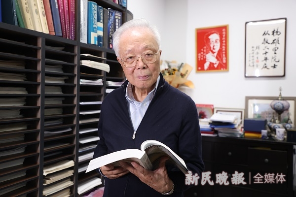 喧闹的徐家汇,复旦大学上海医学院一栋砖红色外墙的科研楼,进出的人们总是步履匆匆。一位耄耋老人的办公室,在五楼深处。推开门,满壁书籍映入眼帘,让人顿生“斗室乾坤大,寸心天地宽”之感。能想象吗,一位神经生物学家、生理学家的书橱里,竟有不少是语言类的词典和文集。抬眼,祝贺先生从教60年的书画被挂在了显眼处。紧挨着办公室的,是杨雄里课题组实验室。
