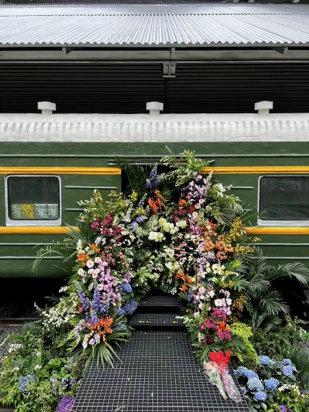 图说:鲜花装扮的列车成为上海(国际)花展徐汇滨江主会场又一打卡点 采访对象提供(下同)